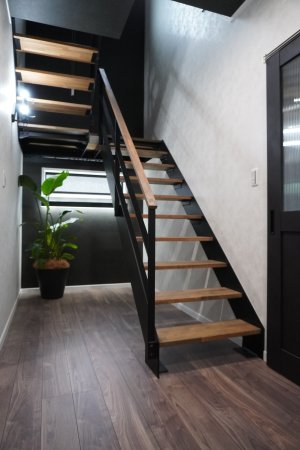 こだわりのバイクガレージのあるウッディモダンスタイル