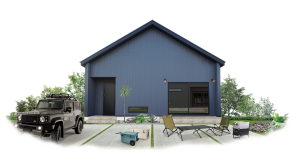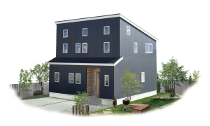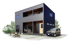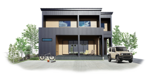 クールな外観に木目の外壁がアクセントのキューブモダンスタイル