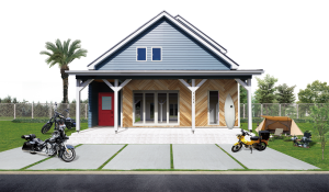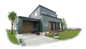 こだわりのバイクガレージのあるウッディモダンスタイル