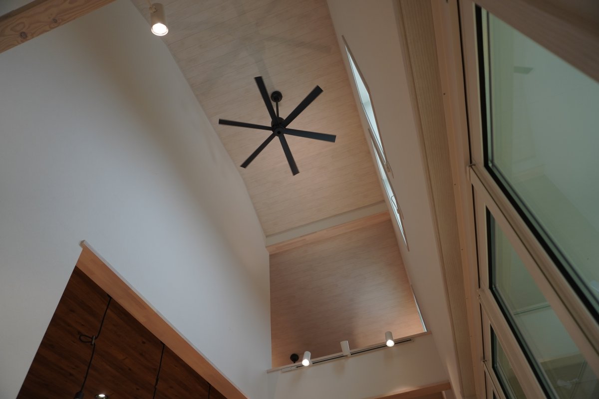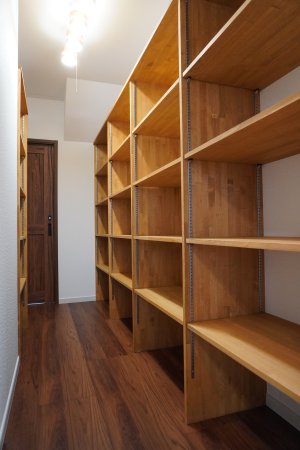 家の中心にウォークスルーできるファミリークロークのある家